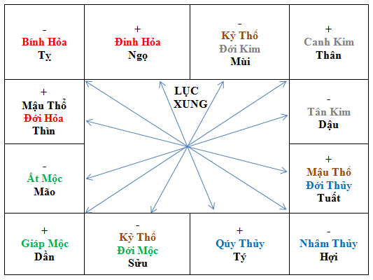 | STT | Nhóm xung khắc (Tứ hành xung) | Cặp xung khắc (Lục xung) |